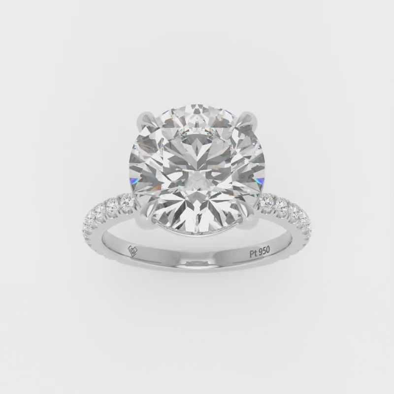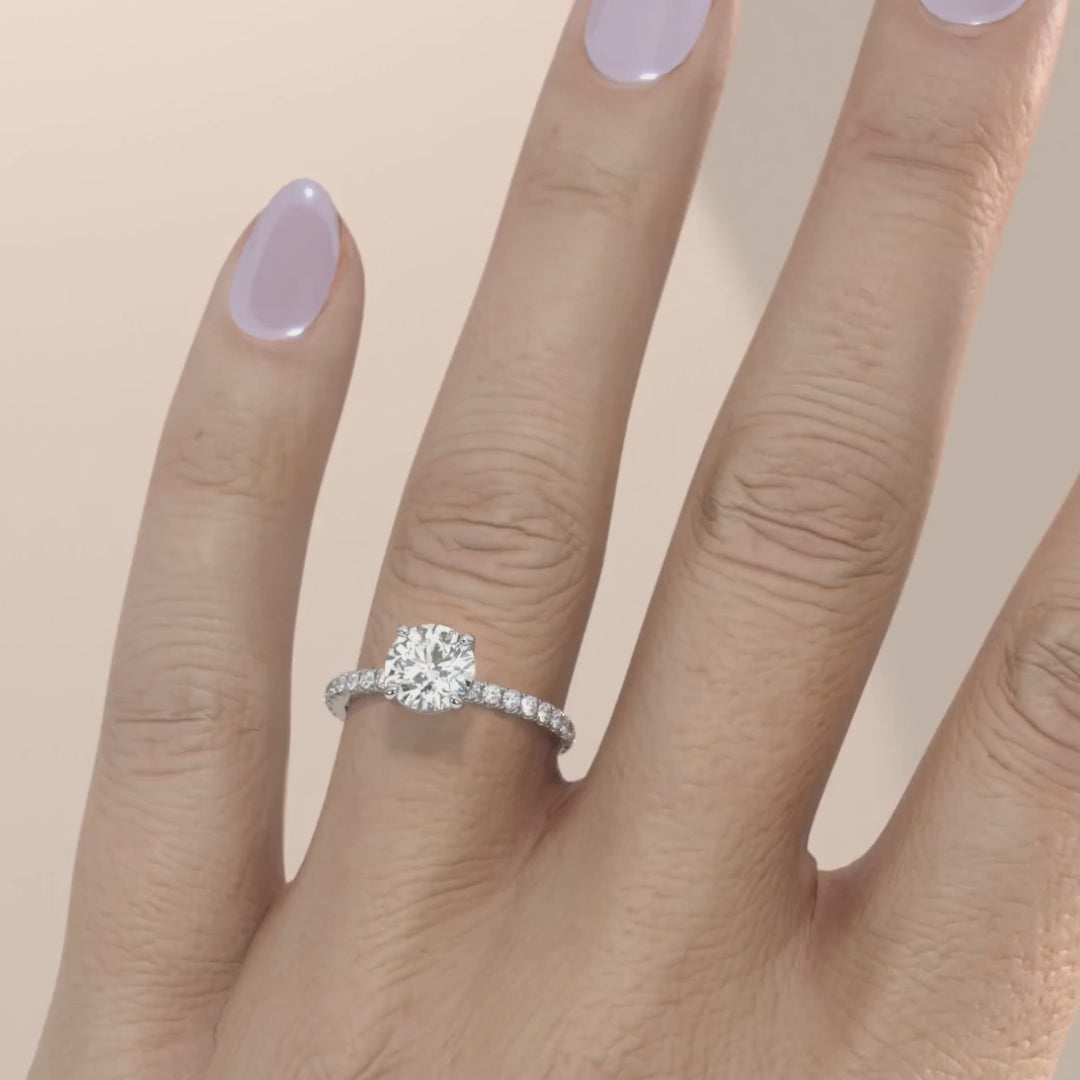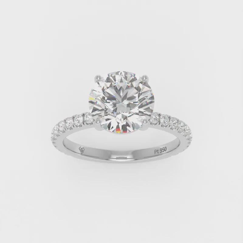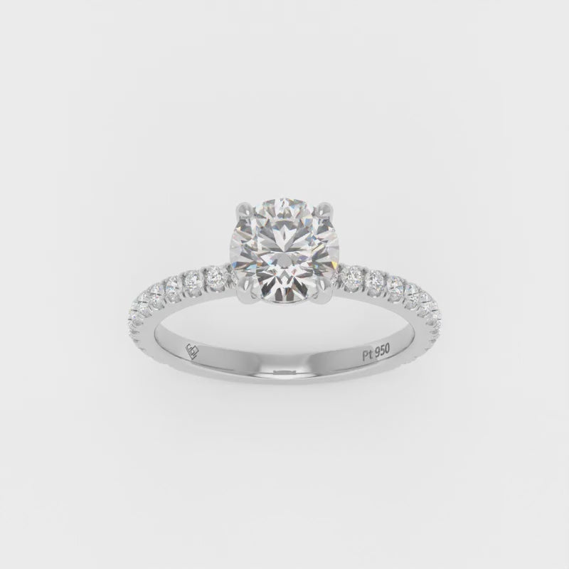 LGD Abigail diamond engagement ring features an elegant Round cut diamond with a diamond band giving the ring extra brilliance and fire. This design is set within a 4 claw platinum or 18k gold band.