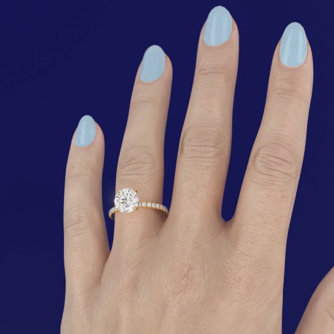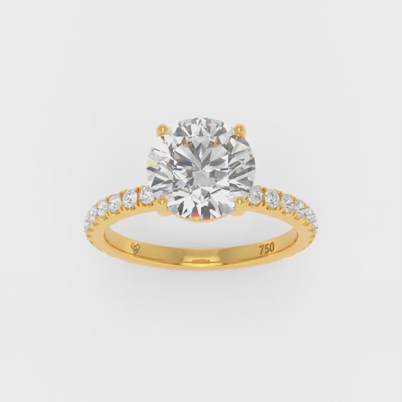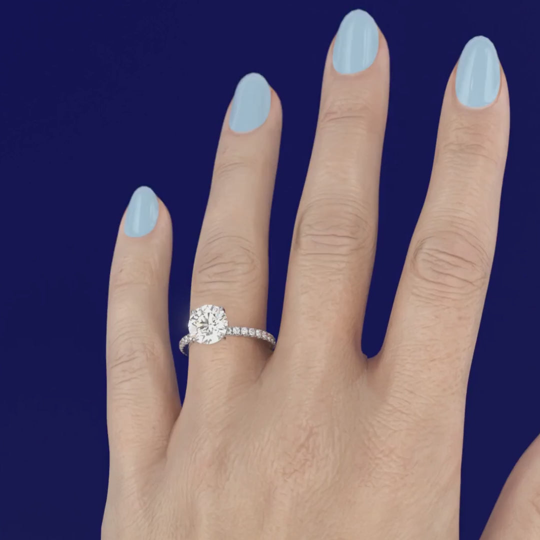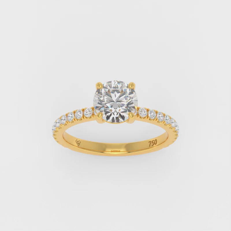LGD Abigail diamond engagement ring features an elegant Round cut diamond with a diamond band giving the ring extra brilliance and fire. This design is set within a 4 claw platinum or 18k gold band.