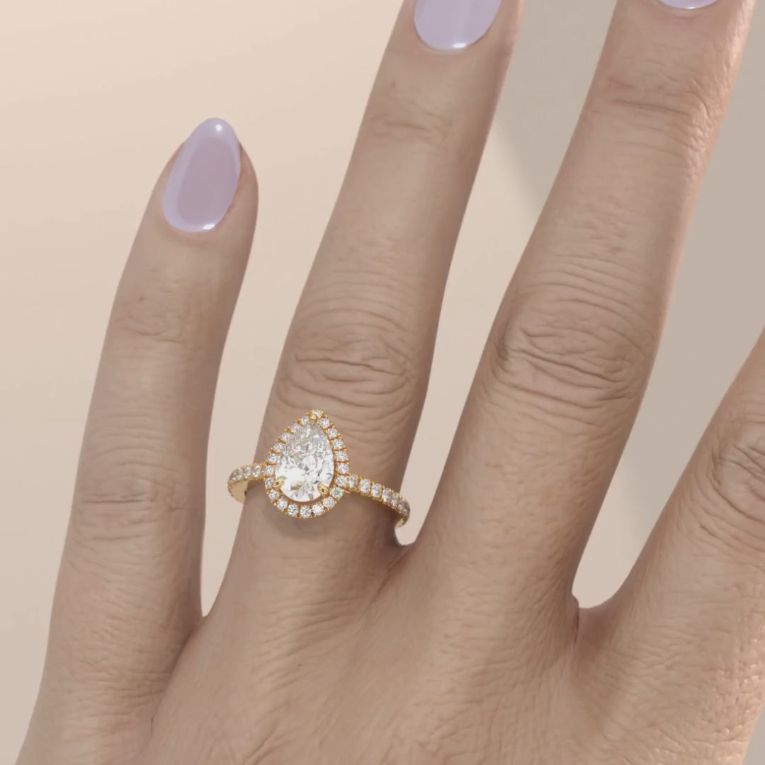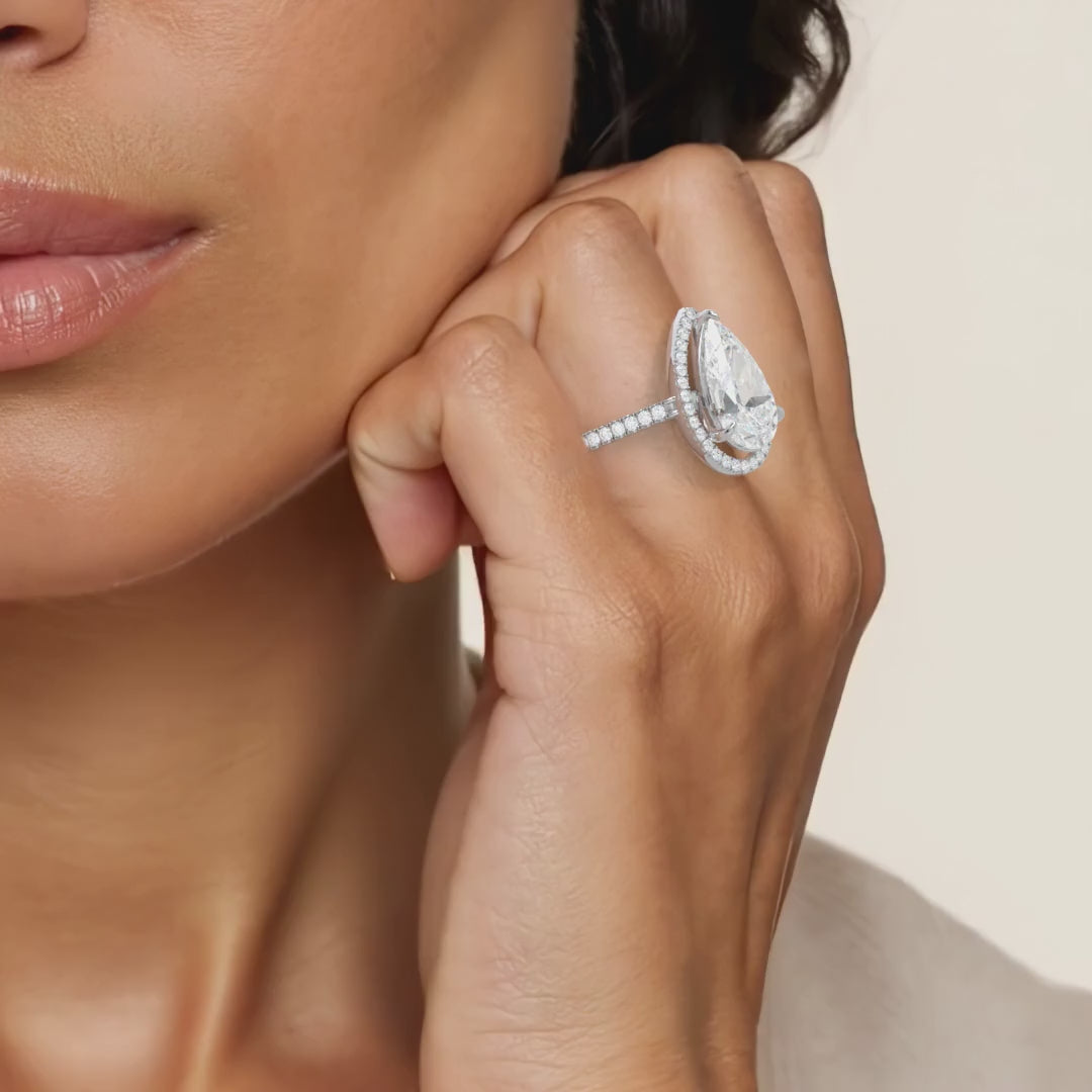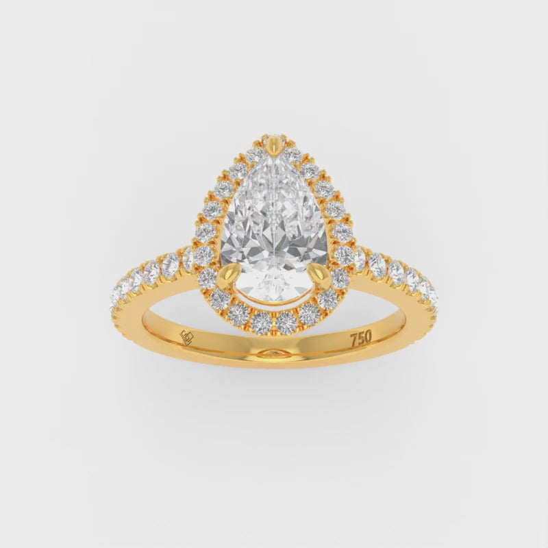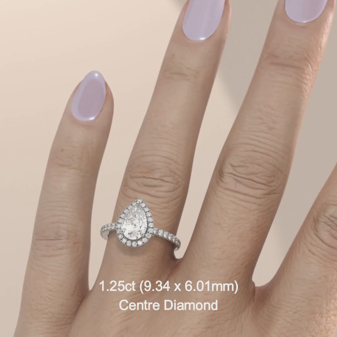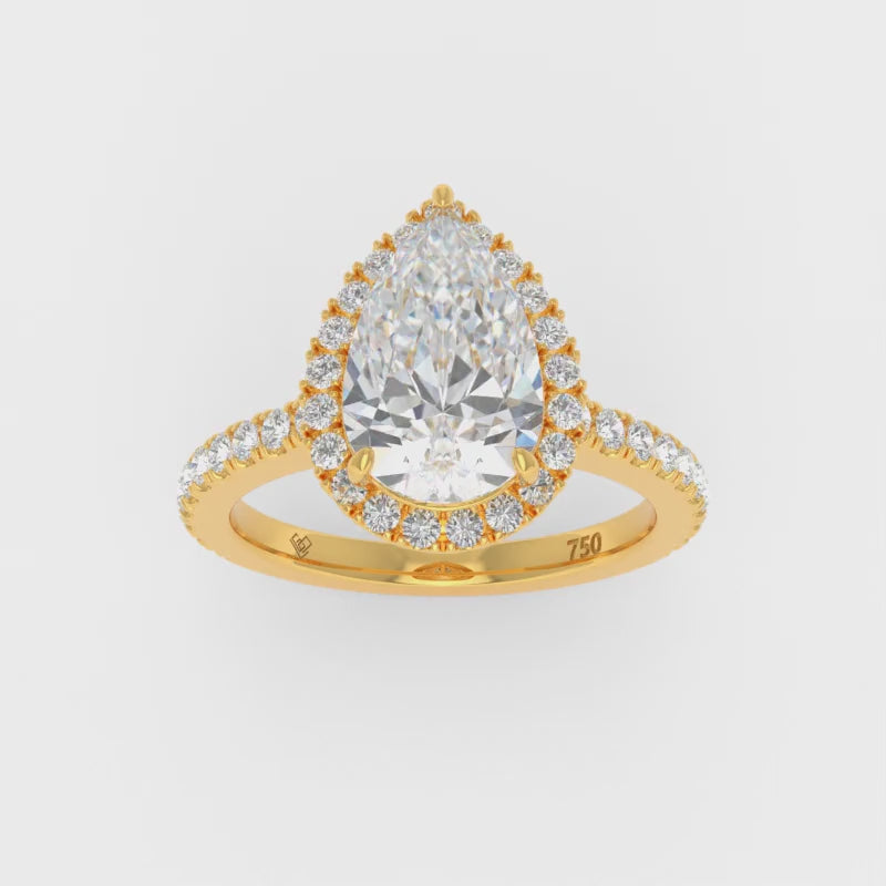 Bella Pear Cut Diamond Engagement Ring with Diamond Halo & Diamond Band