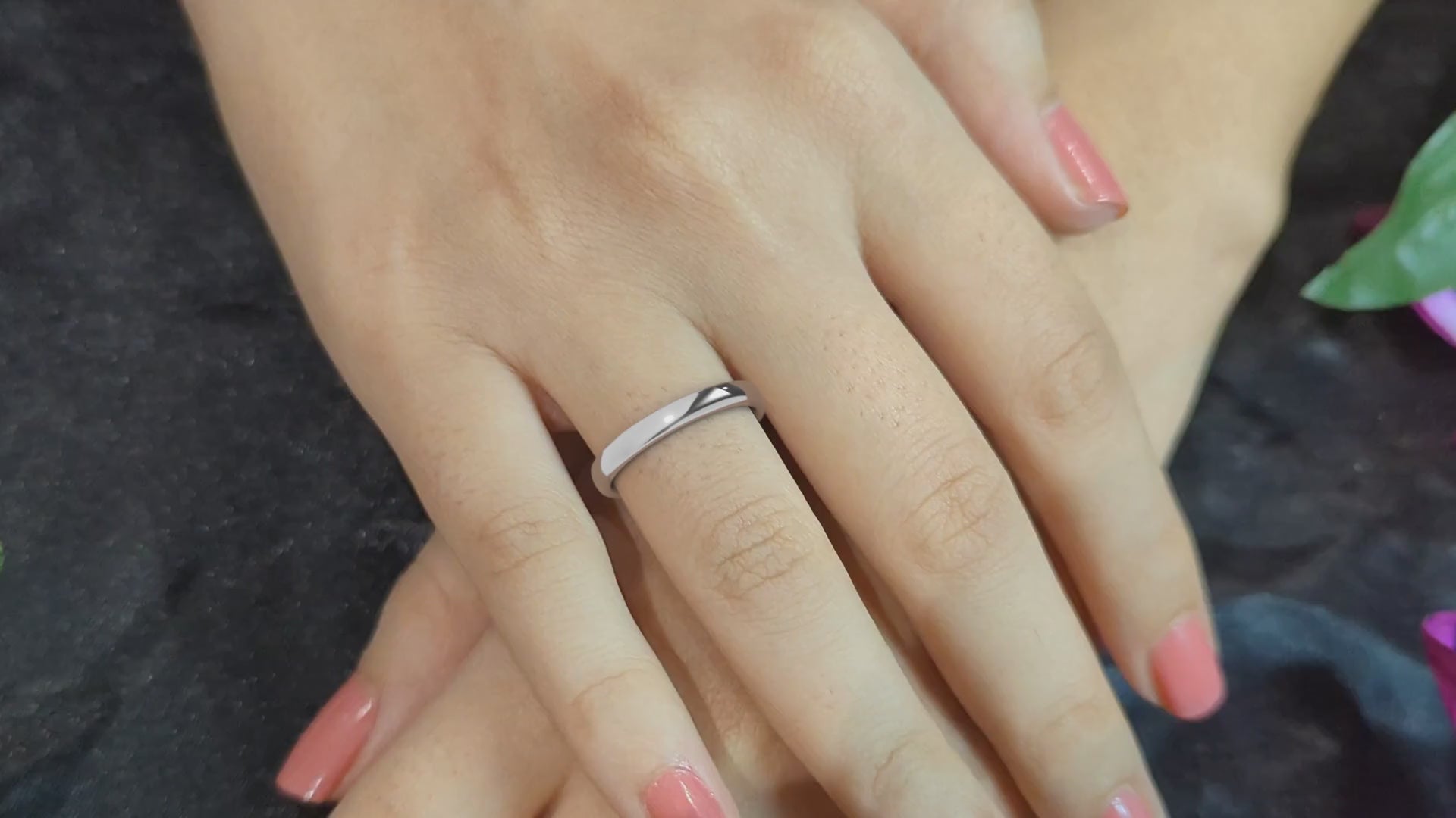 Experience timeless elegance with our women's court-shaped platinum wedding band.
