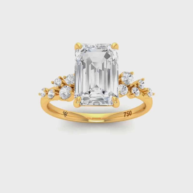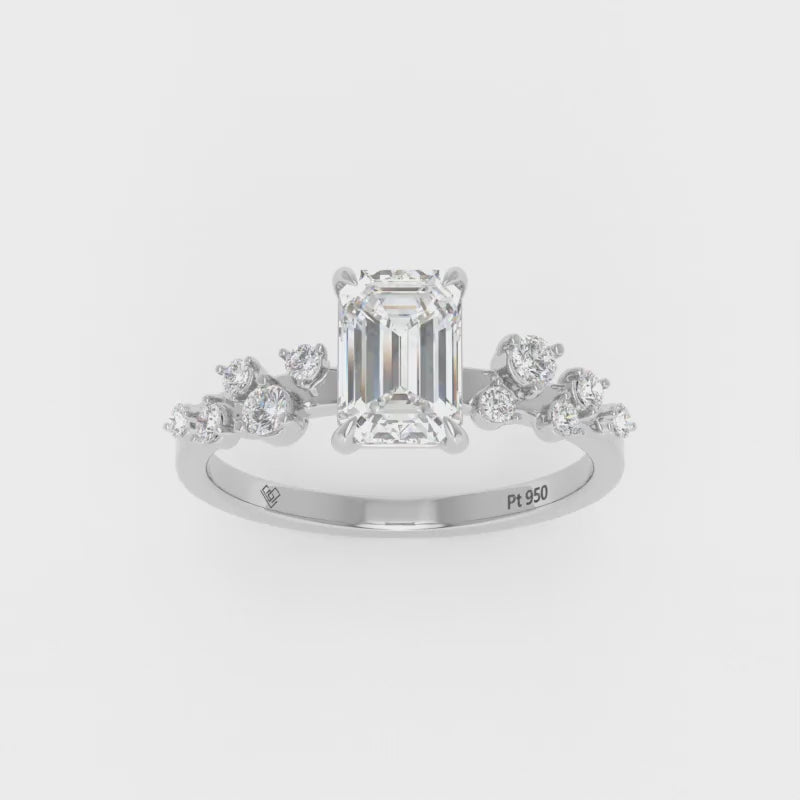 Layla Emerald Cut Diamond Engagement Ring with Accent Band