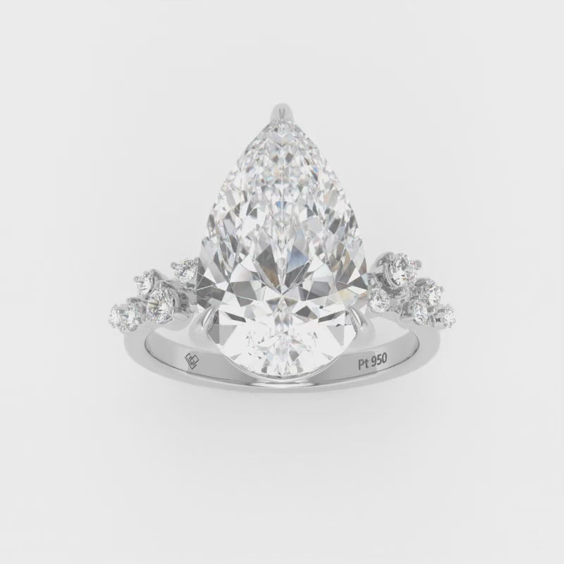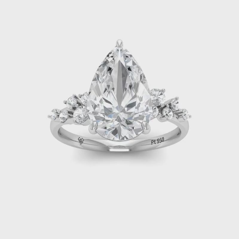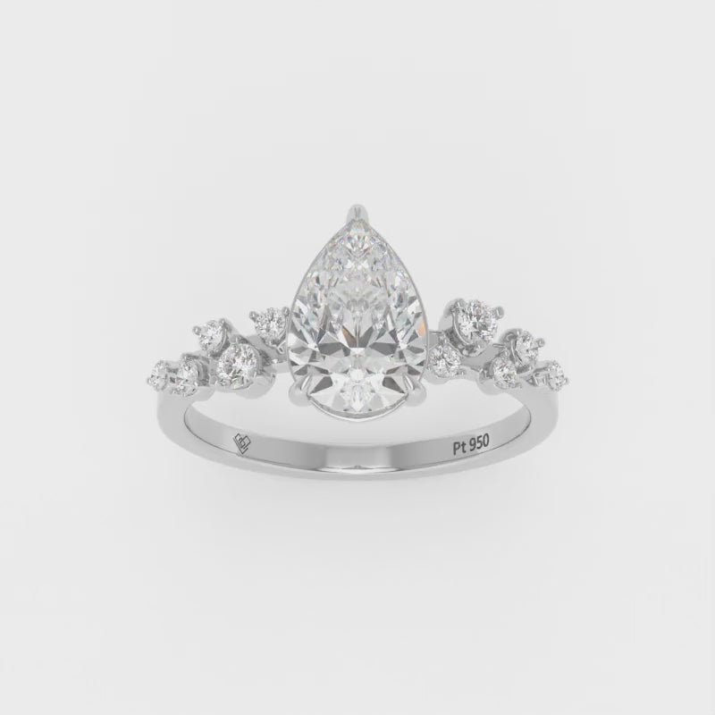 Love Grown Diamonds engagement ring features a pear cut diamond with an accent diamond band giving the ring extra brilliance and fire. This design is set within a 4 claw platinum or 18k gold band.