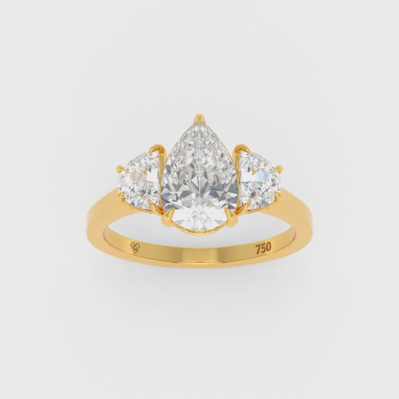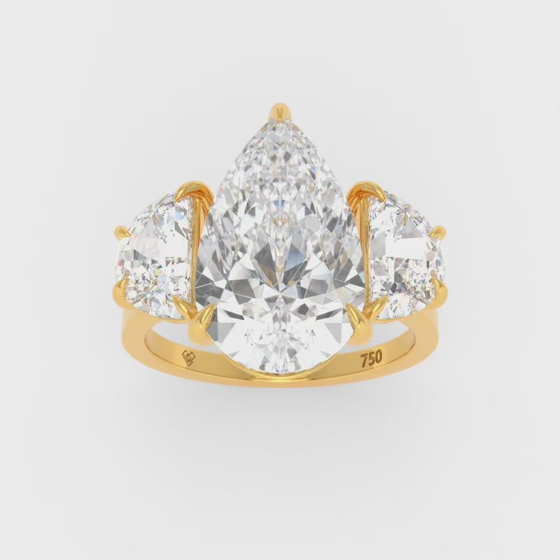Kamala Pear Cut Diamond Engagement Ring With Half Moon Cut Side Diamonds