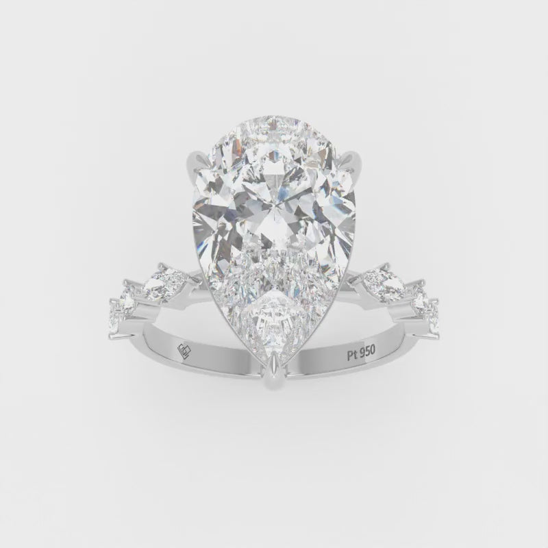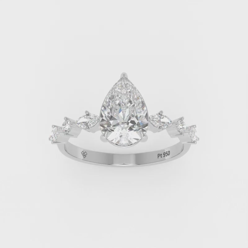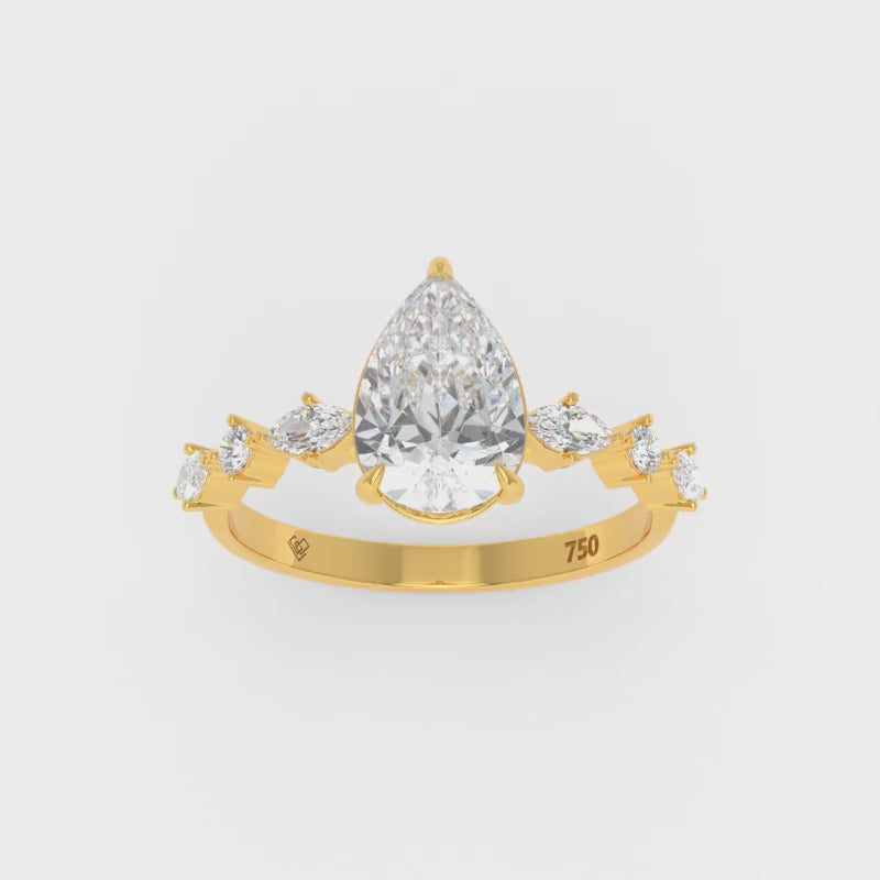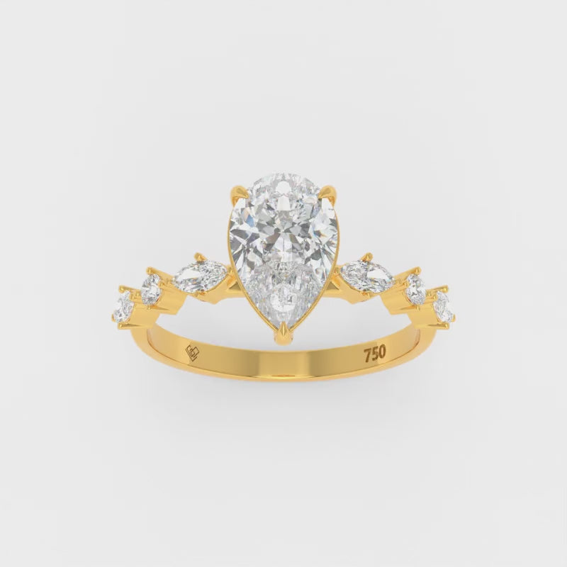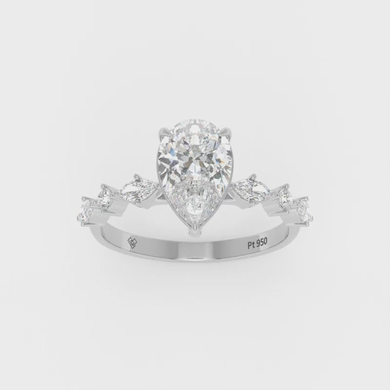 Elizabeth Pear Cut Diamond Engagement Ring With A Marquise And Round Cut Diamond Band