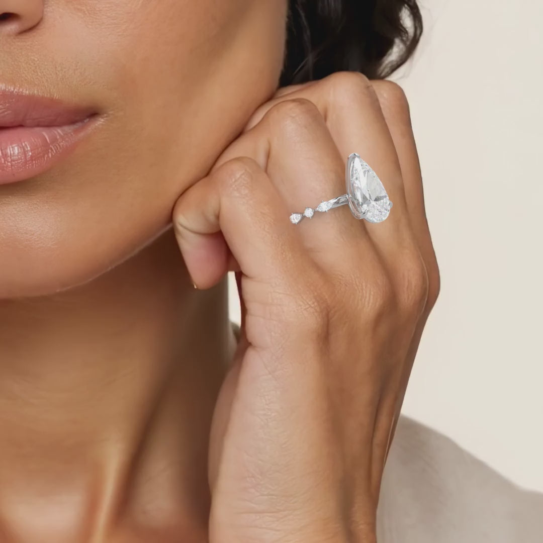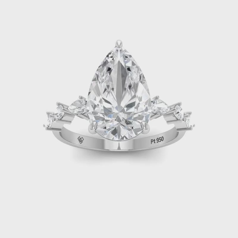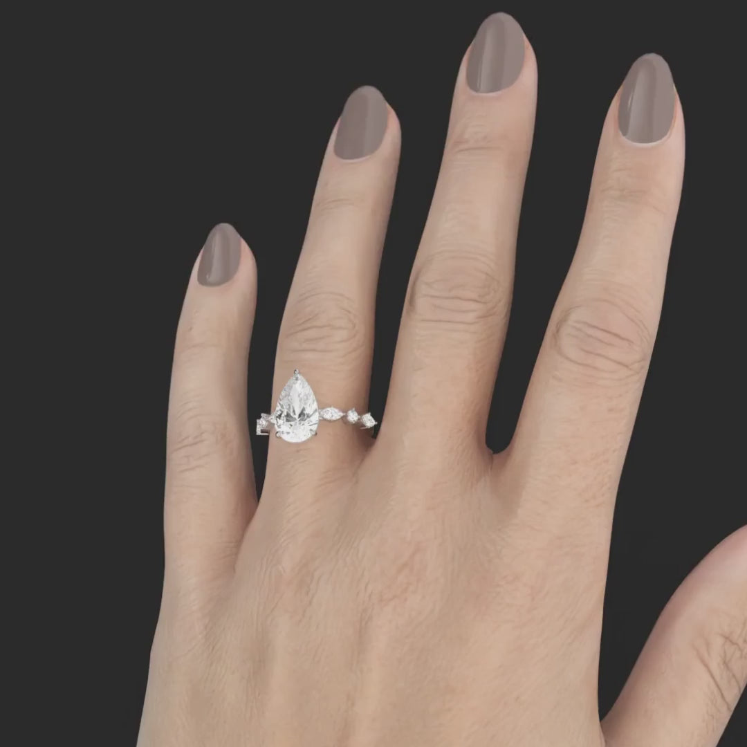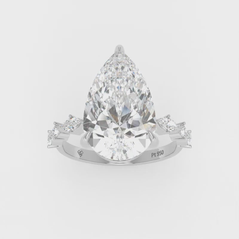 Elizabeth Pear Cut Diamond Engagement Ring With A Marquise And Round Cut Diamond Band