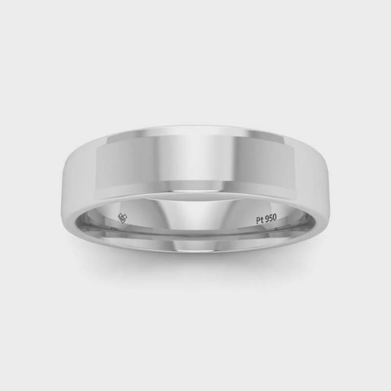 Discover the refined elegance of our men's beveled edge platinum wedding band. Expertly crafted, this exquisite piece showcases a contemporary design that pairs sophistication with a rugged edge, perfect for the modern gentleman.